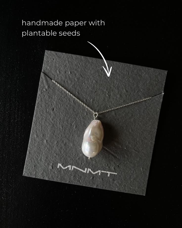 We care about the planet and believe every business owner should do. We're considerate of the carbon print we leave and this is why we are contsantly trying to minimize it. We use packaging that is 100% recyclable and biodegradable, including cardboard paper boxes that can be re-used to store your jewelry in the future, but also handmade paper that contains real plantable seeds. As of 2026, we do not use any plastic in any of our products or packaging. We encourage all our clients to re-purpose or recycle all the materials that cannot be used again. Thank you for protecting our environment!